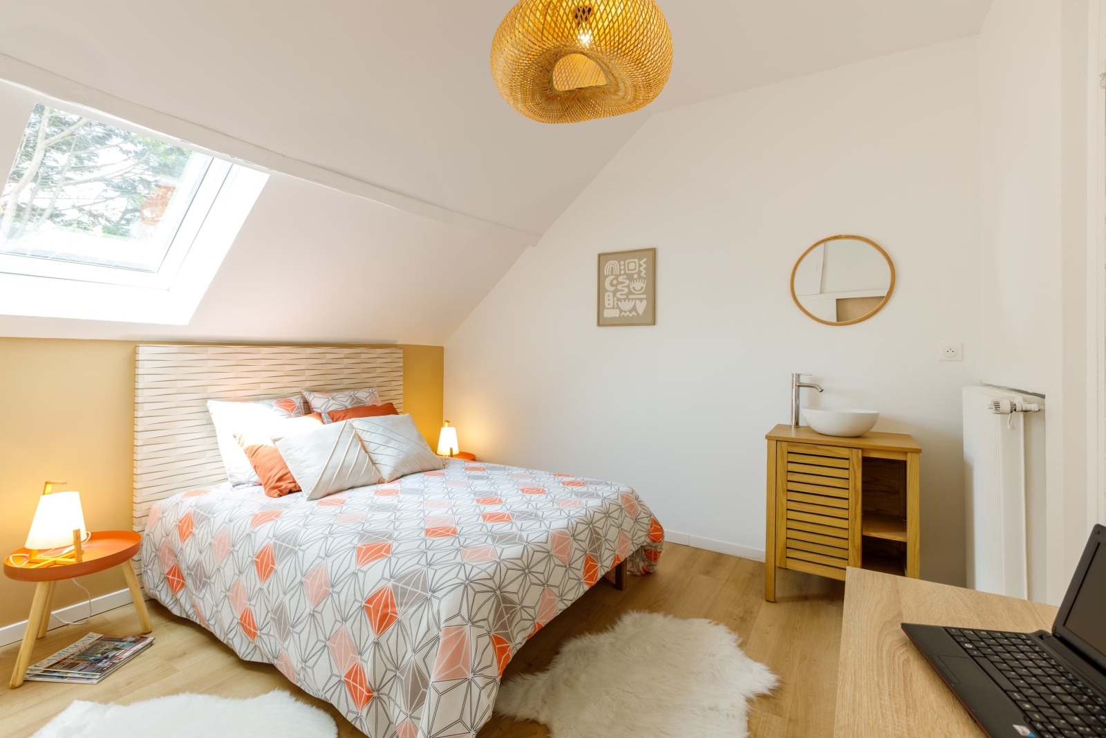 Aux étages, l'aménagement d'une chambre permet d'inspirer les futurs acquéreurs sur les trois autres chambres.
